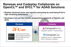 Codeplay Software has announced it is working with Renesas, a leading Japanese semiconductor company, to enable their next generation of advanced automotive processors. The technology will be included in future cars that interpret the surroundings and safely take control to avoid accidents or aid with driving functions.