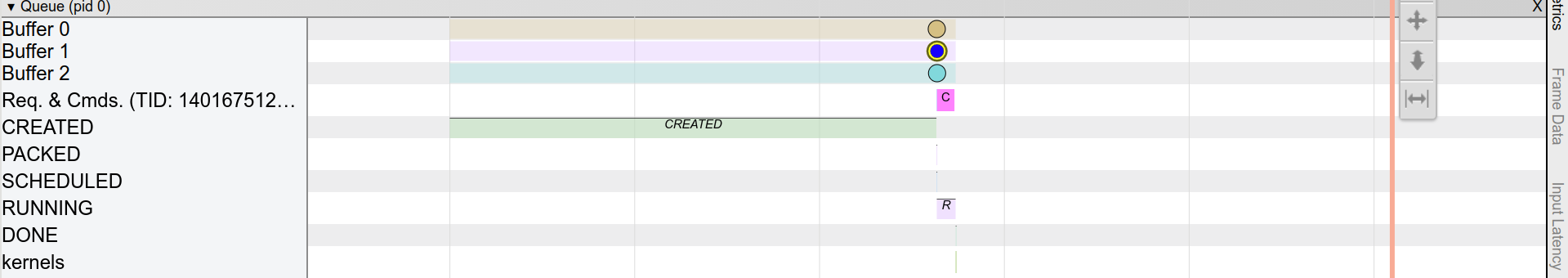 transaction starts at 52.729 ms while the enqueue kernel command we discussed above was fired at 52.766 ms. This is because of the access acquisition to the data in buffers 0, 1, and 2.
