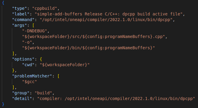 Figure 11d: DPC++ release build task for simple-add-buffer