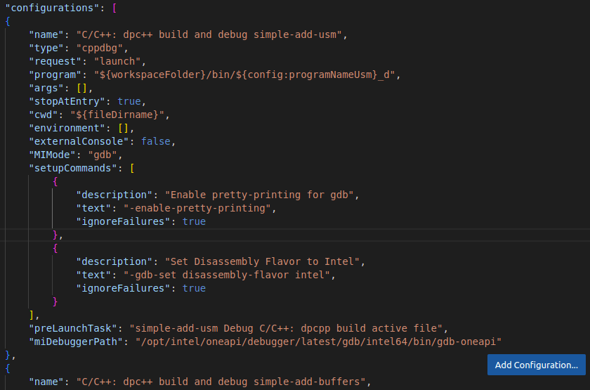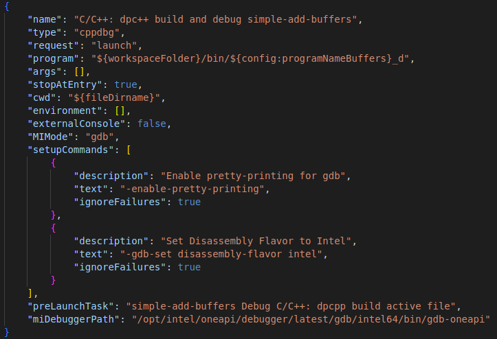 "miDebuggerPath": "/opt/intel/oneapi/debugger/latest/gdb/intel64/bin/gdb-oneapi".
