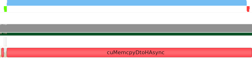 The nsys output shows that too many memory transfers are taking place. We have these small blue kernels visible in