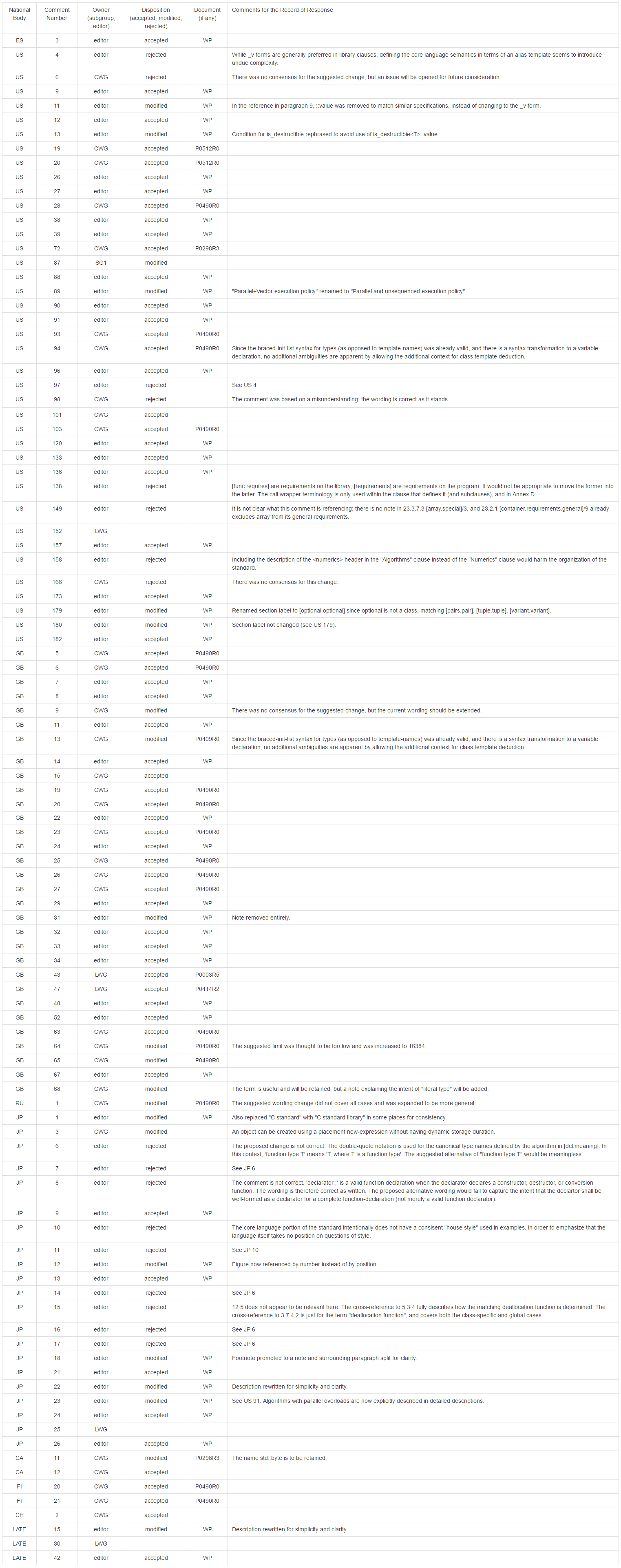 - P0488R0 WG21 Working paper: NB Comments, ISO/IEC CD 14882