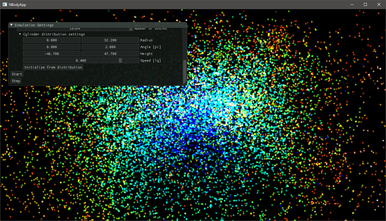 ComputeCpp can better utilize a device when several pieces of work are submitted in sequence, without any synchronization in between. To reduce the gap in between kernels of the NBody application we can change the code so it performs several simulation steps before synchronizing the data for drawing. This can be performed by calling the step function many times. This will cause ComputeCpp to fast-enqueue multiple kernels at once, allowing the scheduler to execute them as soon as possible. Let's make the change: